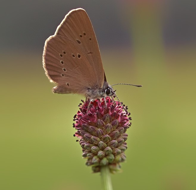 Bläulinge sind Schmetterlinge. Ameisenbläulinge sind aufgrund ihrer extremen Spezialisierung stark gefährdet. Sie legen ihre Eier in die Blütenköpfe des Großen Wiesenkopfes. Die Raupen ernähren sich von den Blüten und höhlen diese aus. Nach einigen Häutungen lassen sich die Raupen zu Boden fallen und hoffen, dass eine vorbeikommende Rotgelbe Knotenameise (Myrmica rubra) sie ins Ameisennest transportiert. In ihrem Aussehen gleichen die Raupen einer Ameisenlarve. Die Raupen besitzen zudem Honig- und Honigduftdrüsen, mit deren Produkten sie attraktiv für die Ameisen sind. Zusätzlich scheinen die Raupen einen Duft abzusondern, der die Ameisen besänftigt. Wird die Raupe von der Ameise ins Ameisennest getragen, wird sie von den Ameisen gefüttert, frisst aber auch die Ameisenbrut. Im Nest besänftigt die Raupe die Ameisen weiterhin mit ihren Duftstoffen.