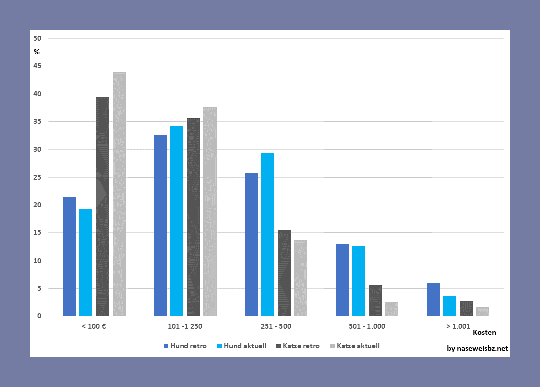 ![Grafische Darstellung Durchschnittliche Tierarztkosten nach Angaben der Tierhalter (nach retrospektiven und aktuellen Angaben) (Datenquelle: Spitzweg, [6])](https://naseweisbz.net/wp-content/uploads/2021/11/tierarztkosten.png?w=300)